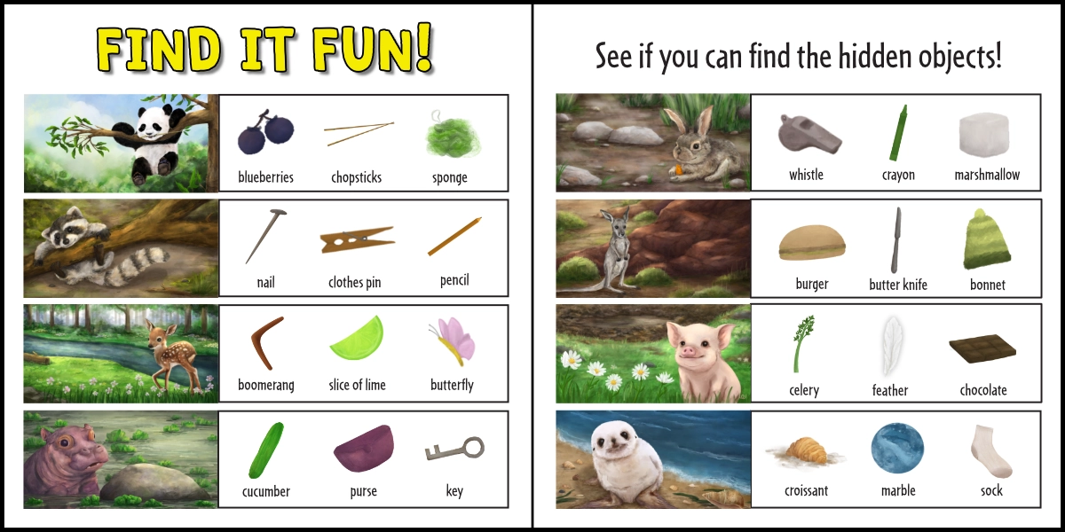 As an added bonus, there are Find It Fun! activities throughout the book. See if you can find the nail, clothes pin, and pencil in the image below!